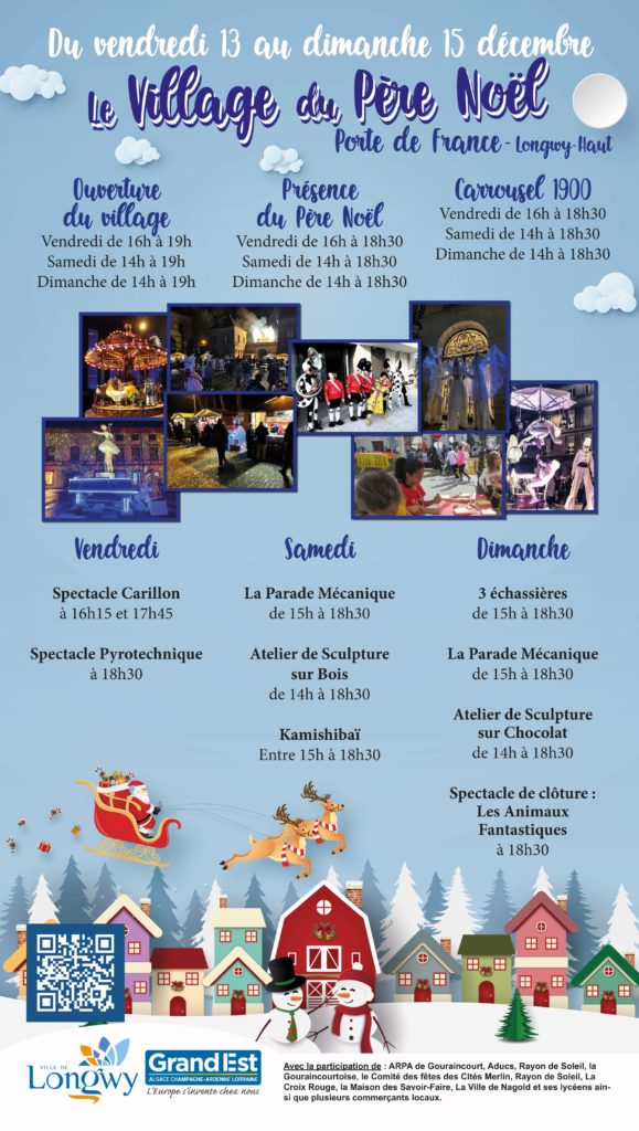 Quelques jours avant les fêtes de fin d’année, le Père Noël a pris l’habitude de faire une halte à Longwy afin de proposer aux enfants deux journées pleines de surprises. Cette année, il installera son village à Longwy-Haut, au pied de la Porte de France.