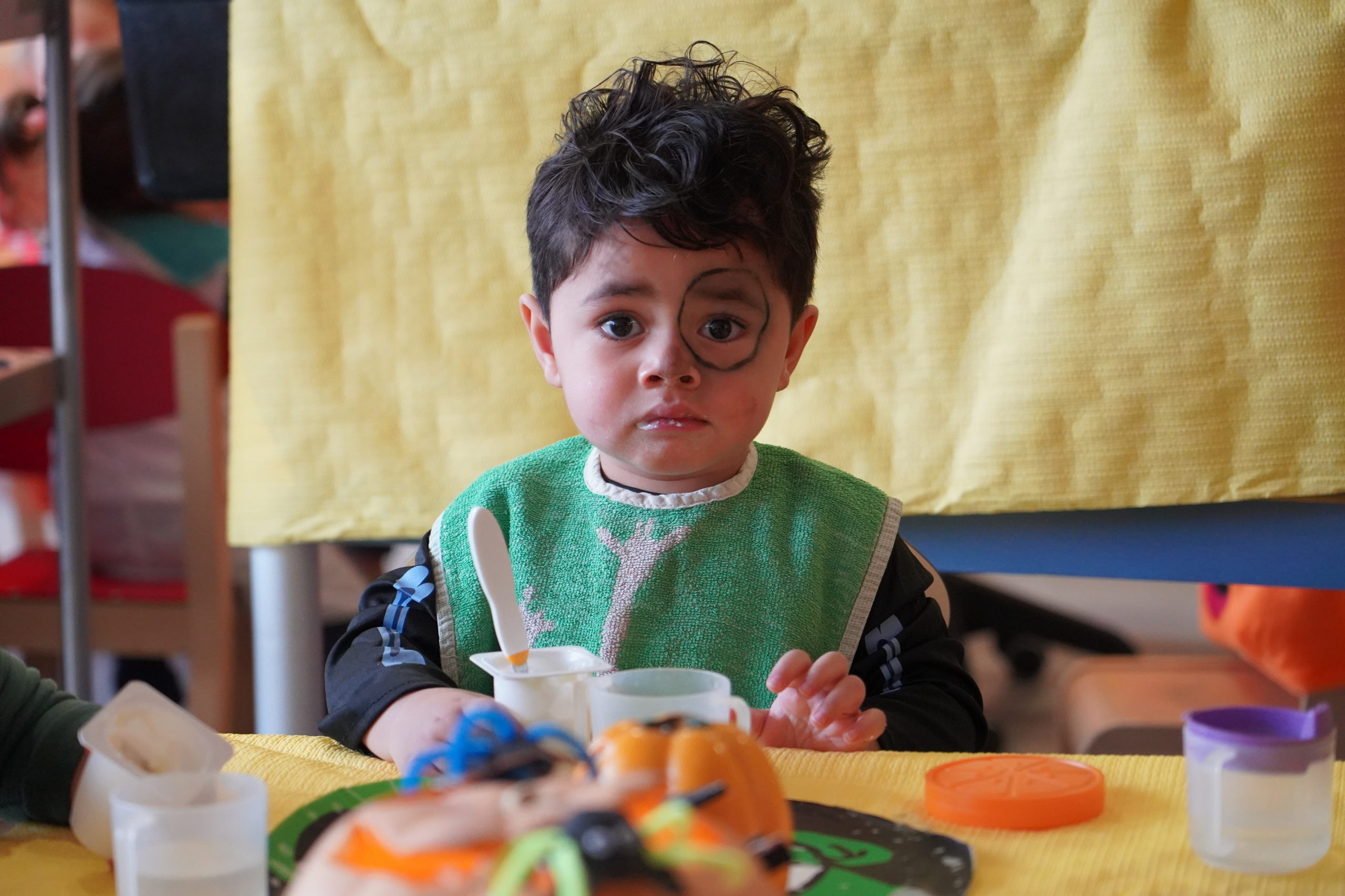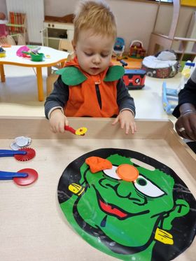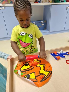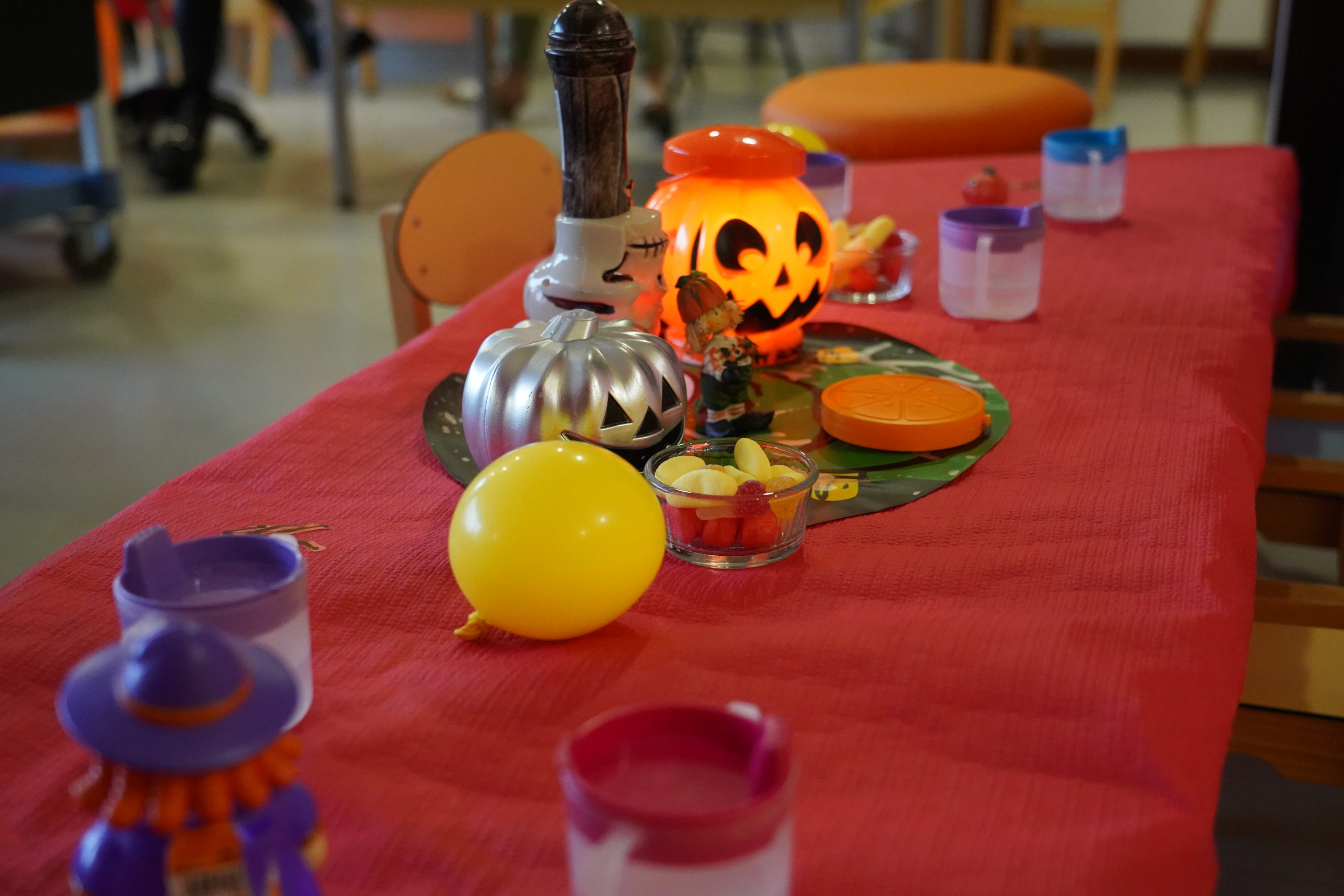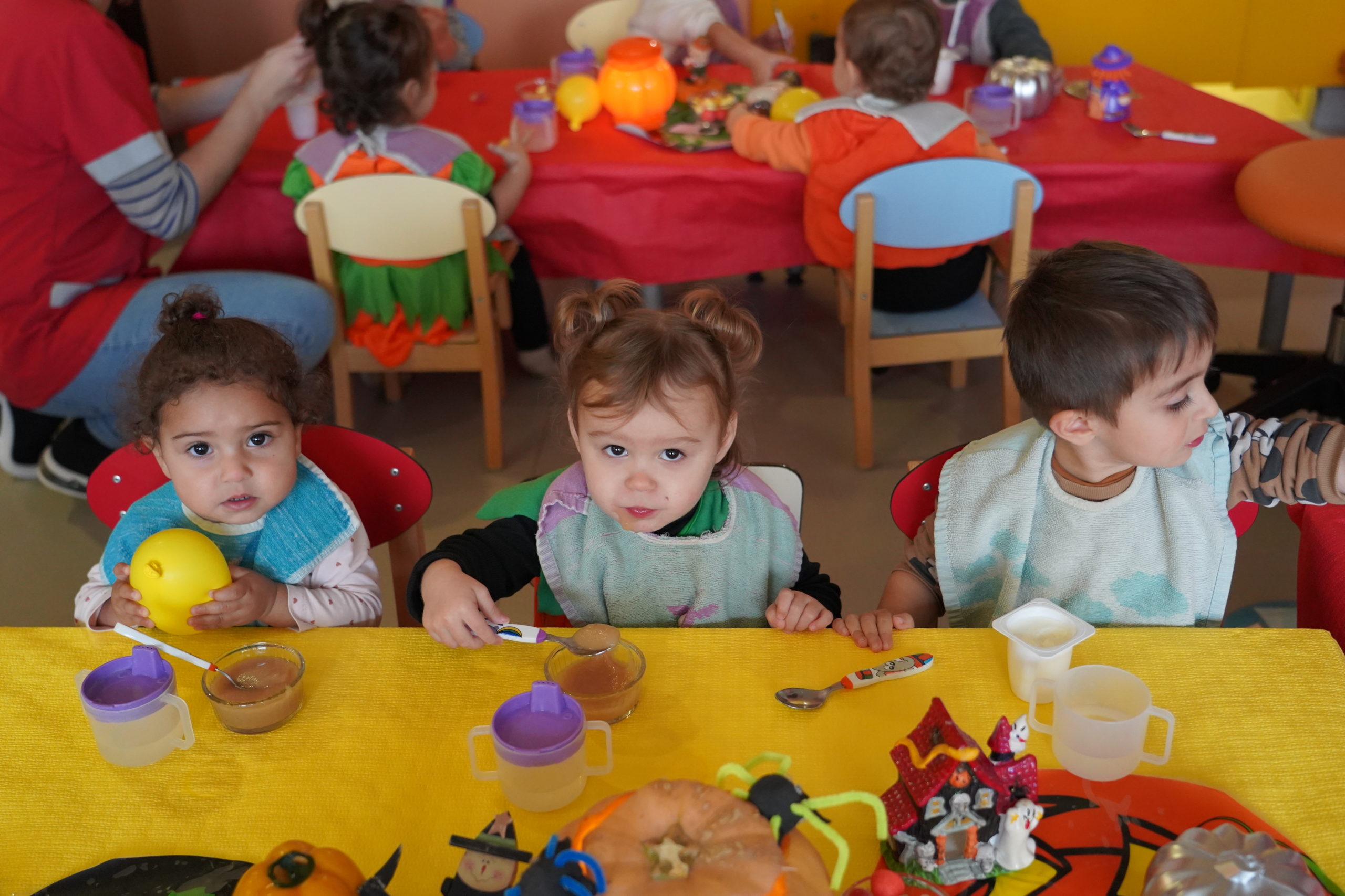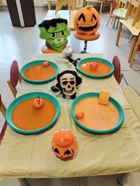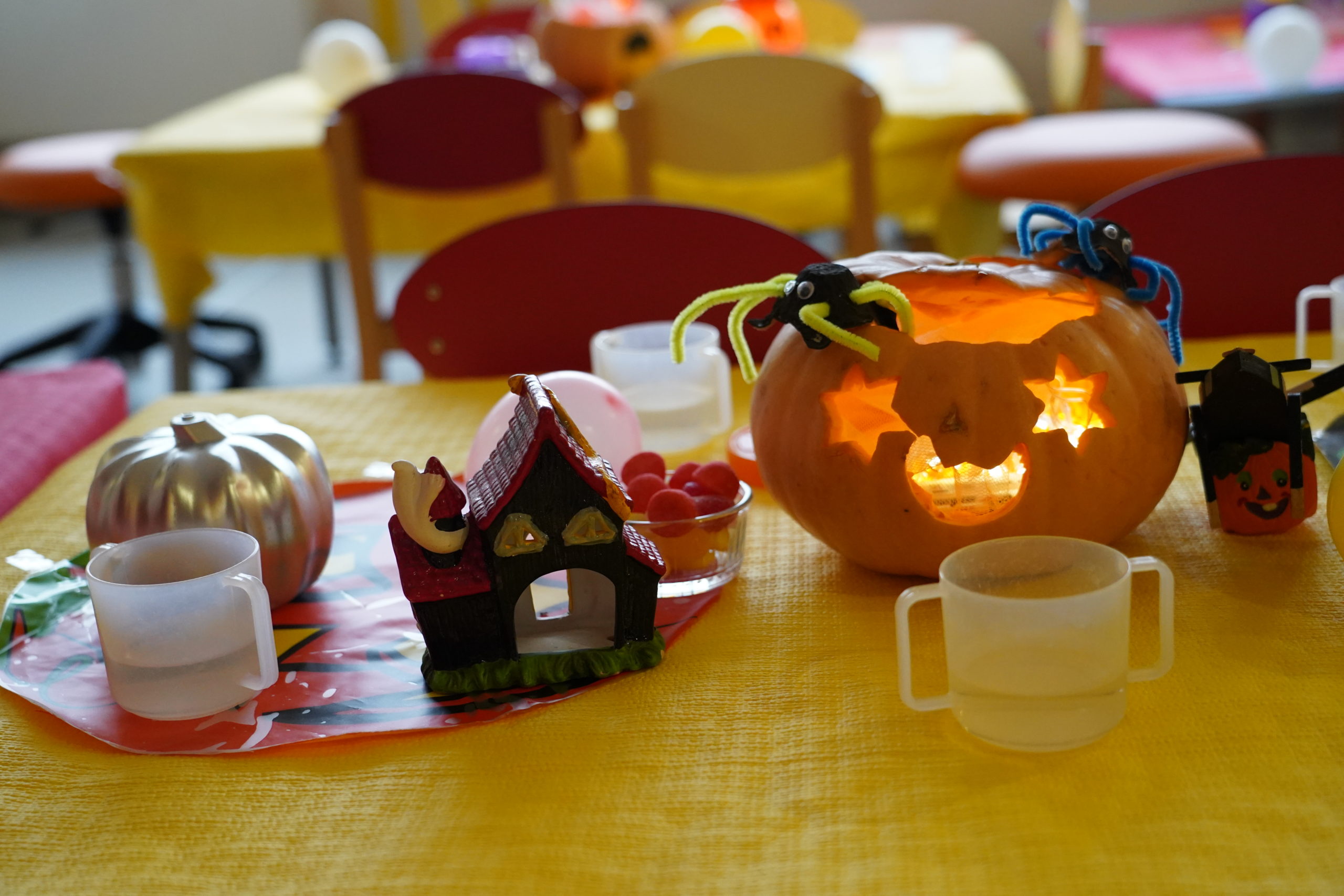 Pour l’occasion, plusieurs ateliers sur ce thème étaient prévus : fabrication de sablés, jeu avec de la mousse orange, peinture au pochoir et manipulation citrouilles, marrons et feuilles, mais aussi jeux avec de la pâte à modeler orange. Certains ont même fabriqué leur propre citrouille d’Halloween !