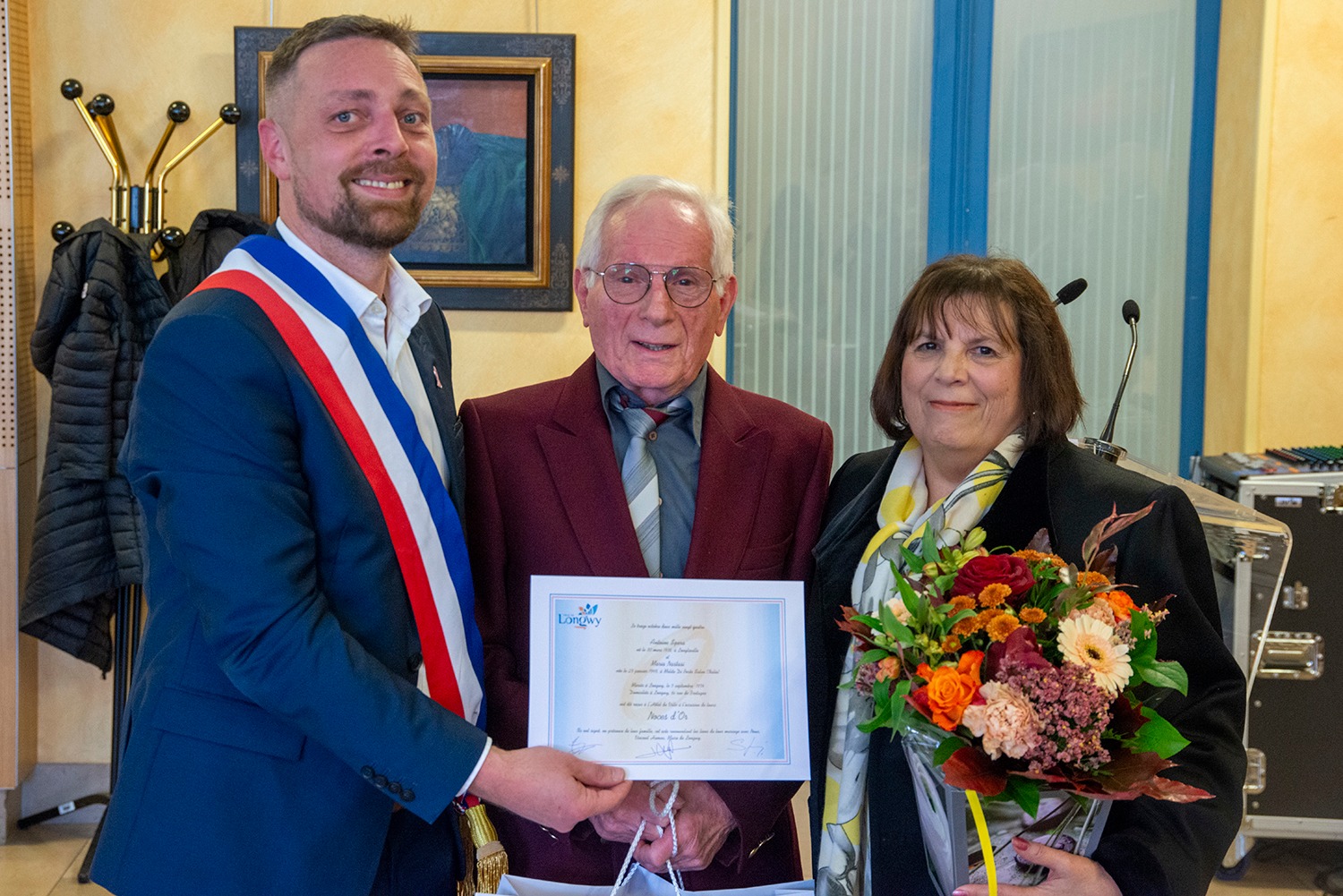Cette année encore, la Ville de Longwy a célébré de belles histoires d’amour et de famille. Onze couples étaient présents en mairie ce dimanche pour fêter leurs noces d’or, de diamant ou de palissandre. Monsieur le Maire, entouré de plusieurs élus, a rendu hommage à ces couples dont l’amour s’est magnifié avec les années. Un amour qui a traversé toutes les périodes, les moments difficiles et les beaux jours.