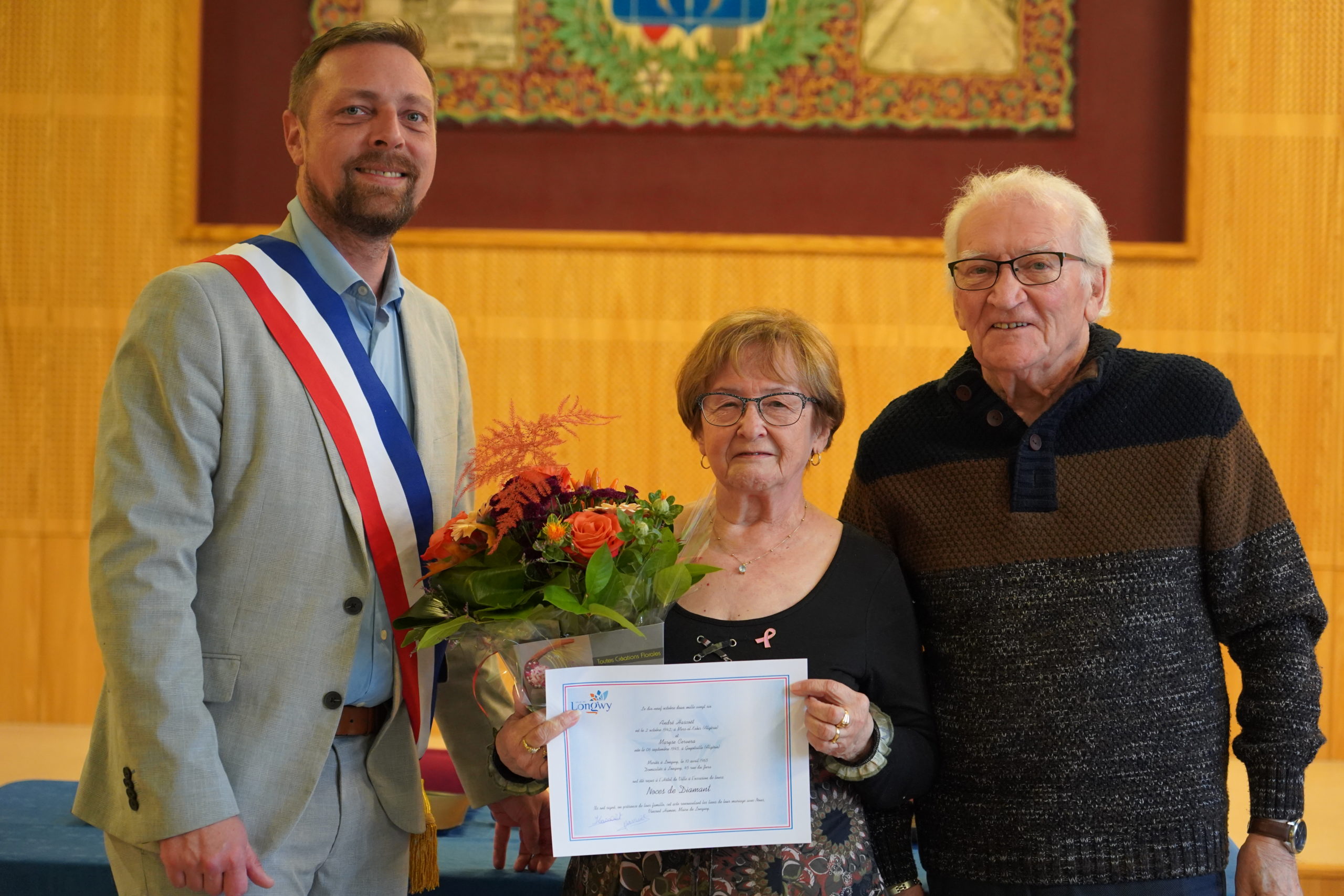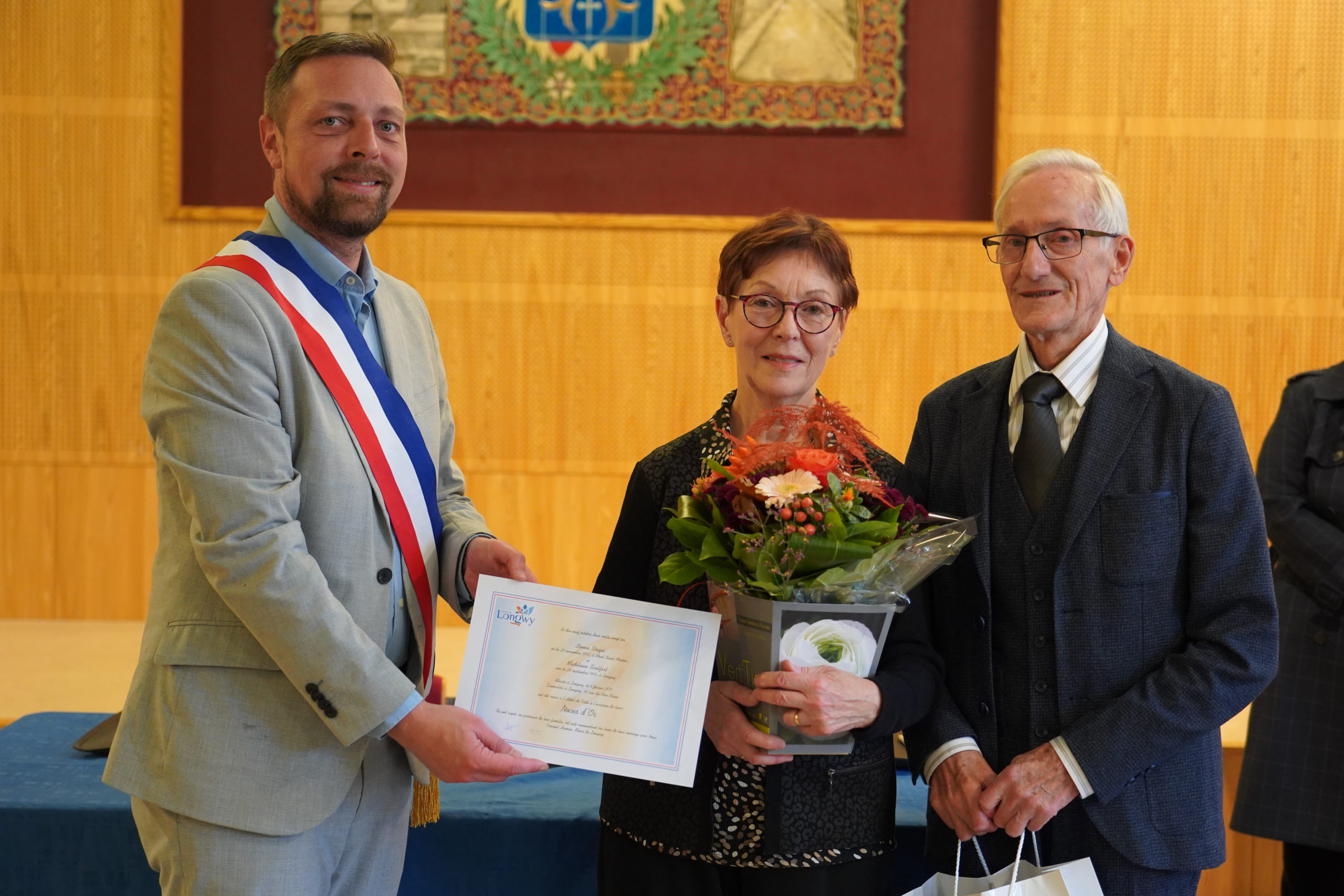 La Ville de Longwy a pour habitude de rendre hommage à l’amour en célébrant les couples qui ont su traverser les décennies main dans la main. Quinze couples ont célébré leurs noces d’or, de diamant ou de palissandre cette année. Ce dimanche, plusieurs d’entre eux était présents en mairie de Longwy-Bas où Monsieur le Maire, entouré de plusieurs élus, a célébré des histoires d’amour qui ont résisté à l’épreuve du temps, traversant ensemble les épreuves comme les moments de bonheur.