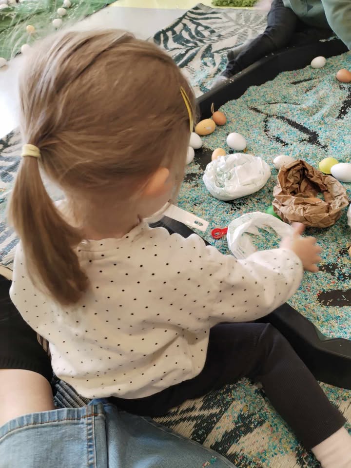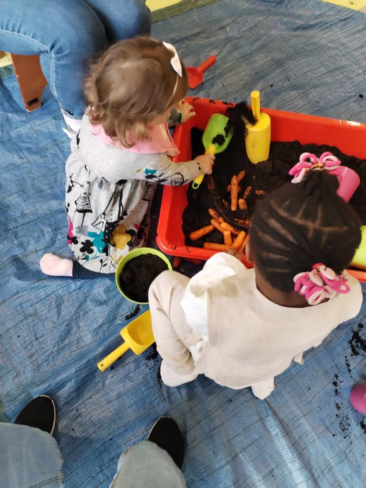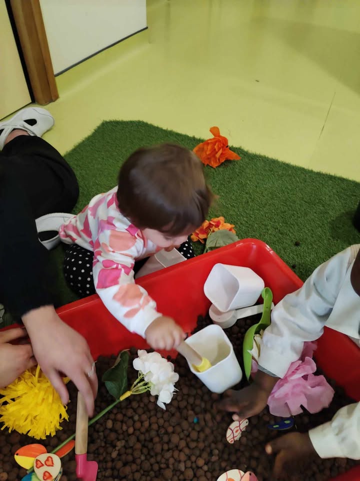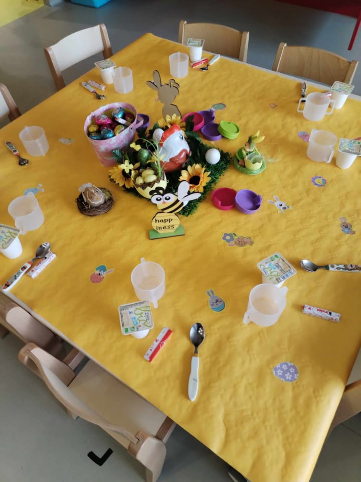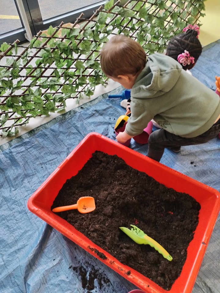 Enfin, la troisième matinée s’est déroulée dans la section des Capucins. Les enfants ont participé à diverses activités de manipulation et de découverte. Ils ont joué avec la terre, planté des carottes et des fleurs, nourri les poussins avec du maïs, et ramassé des œufs à l’aide de pinces pour exercer leur motricité fine. Ils ont également pratiqué le graphisme au sol et sur les vitres, et se sont amusés dans un bac de manipulation sur le thème des abeilles, spécialement réalisé par Leïla.