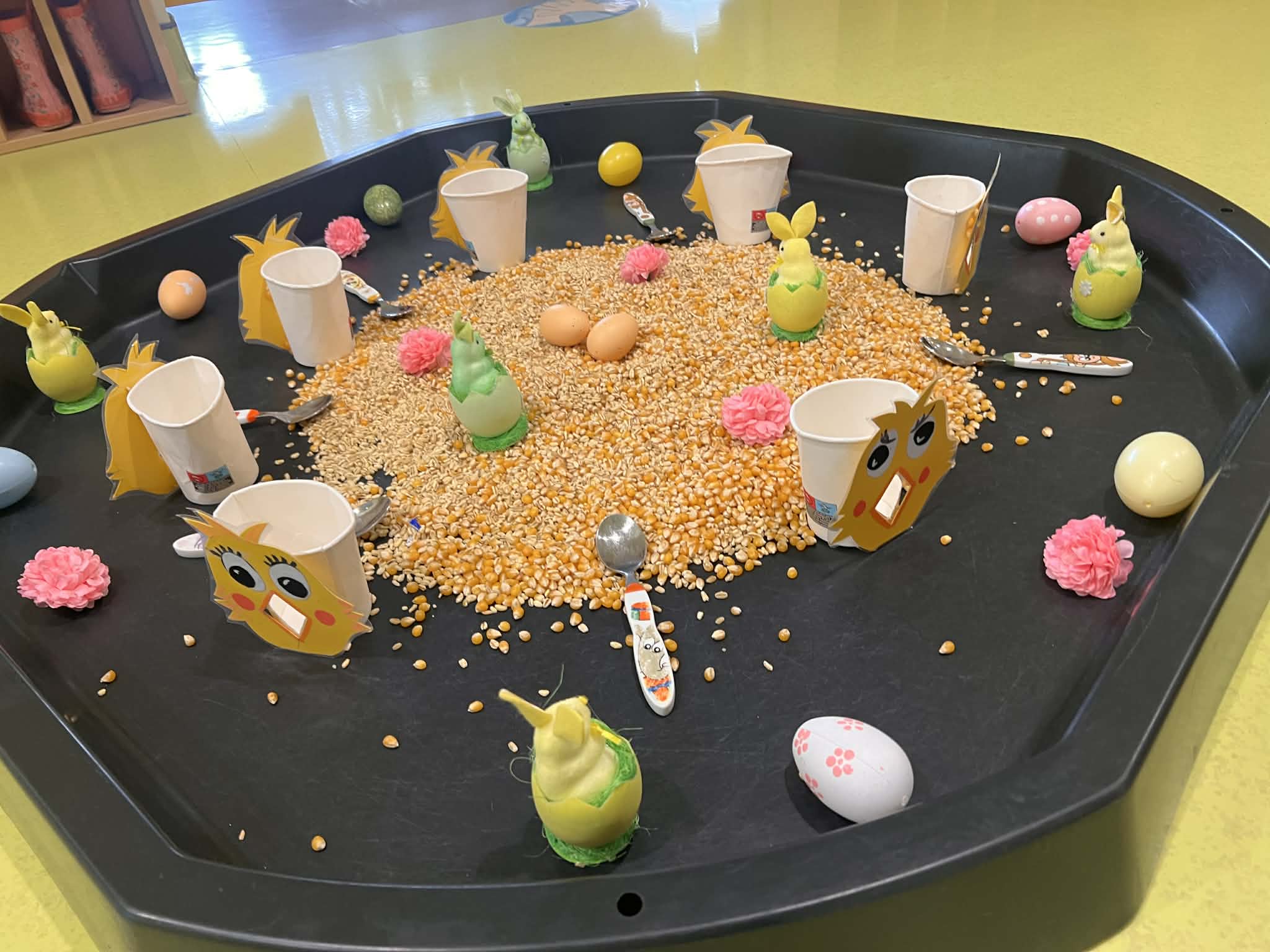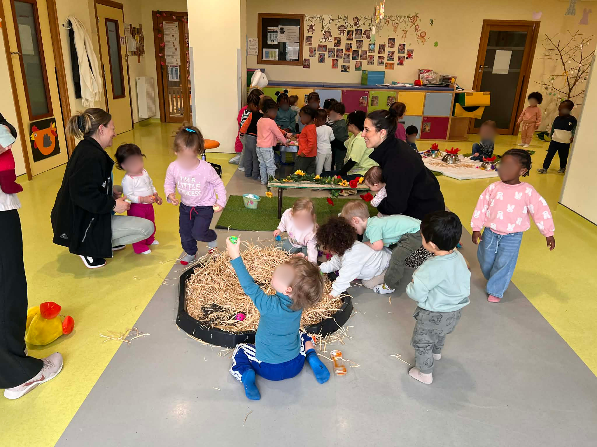 19/4/26 – La semaine passée, la Maison de la Petite Enfance a vécu au rythme de Pâques. Les enfants ont pu profiter de moments festifs et ludiques, entre goûter de Pâques, chasse aux œufs et itinérance à travers différents ateliers de manipulation.