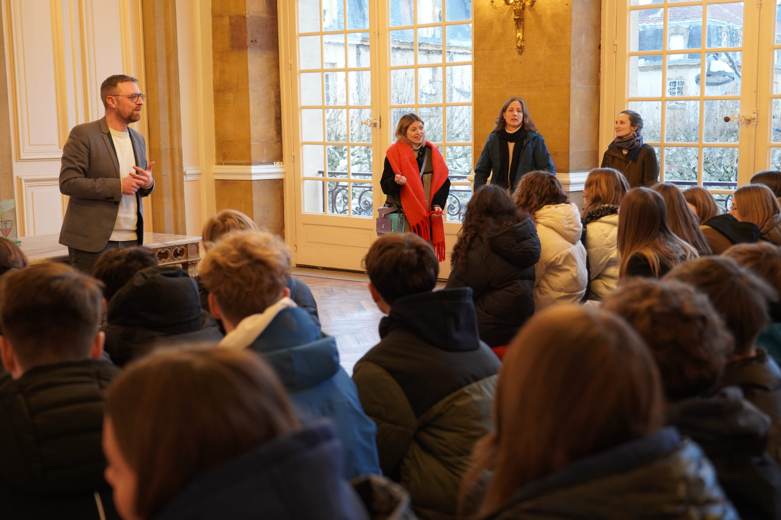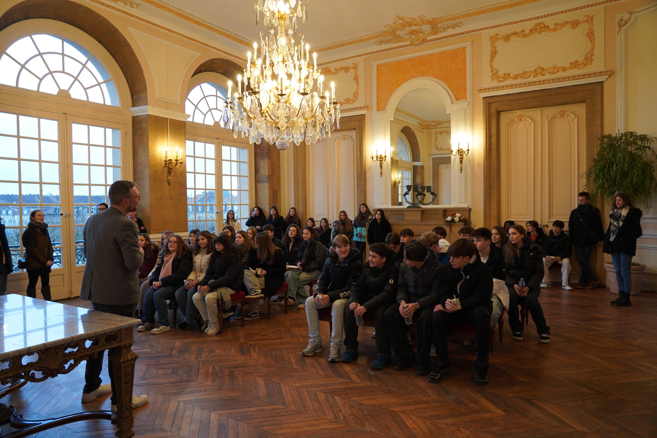 Jeudi dernier, la salle des mariages de l’Hôtel de Ville de Longwy a résonné d’accents français et allemands. La Ville a en effet eu le plaisir d’accueillir une quarantaine d’élèves du lycée Otto-Hahn-Gymnasium de Nagold et du lycée Alfred Mézières, accompagnés de leurs professeurs, dans le cadre du traditionnel échange scolaire entre les deux établissements.