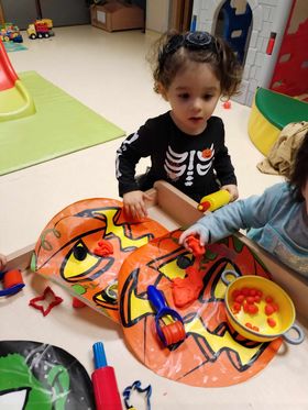 Pour l’occasion, plusieurs ateliers sur ce thème étaient prévus : fabrication de sablés, jeu avec de la mousse orange, peinture au pochoir et manipulation citrouilles, marrons et feuilles, mais aussi jeux avec de la pâte à modeler orange. Certains ont même fabriqué leur propre citrouille d’Halloween !