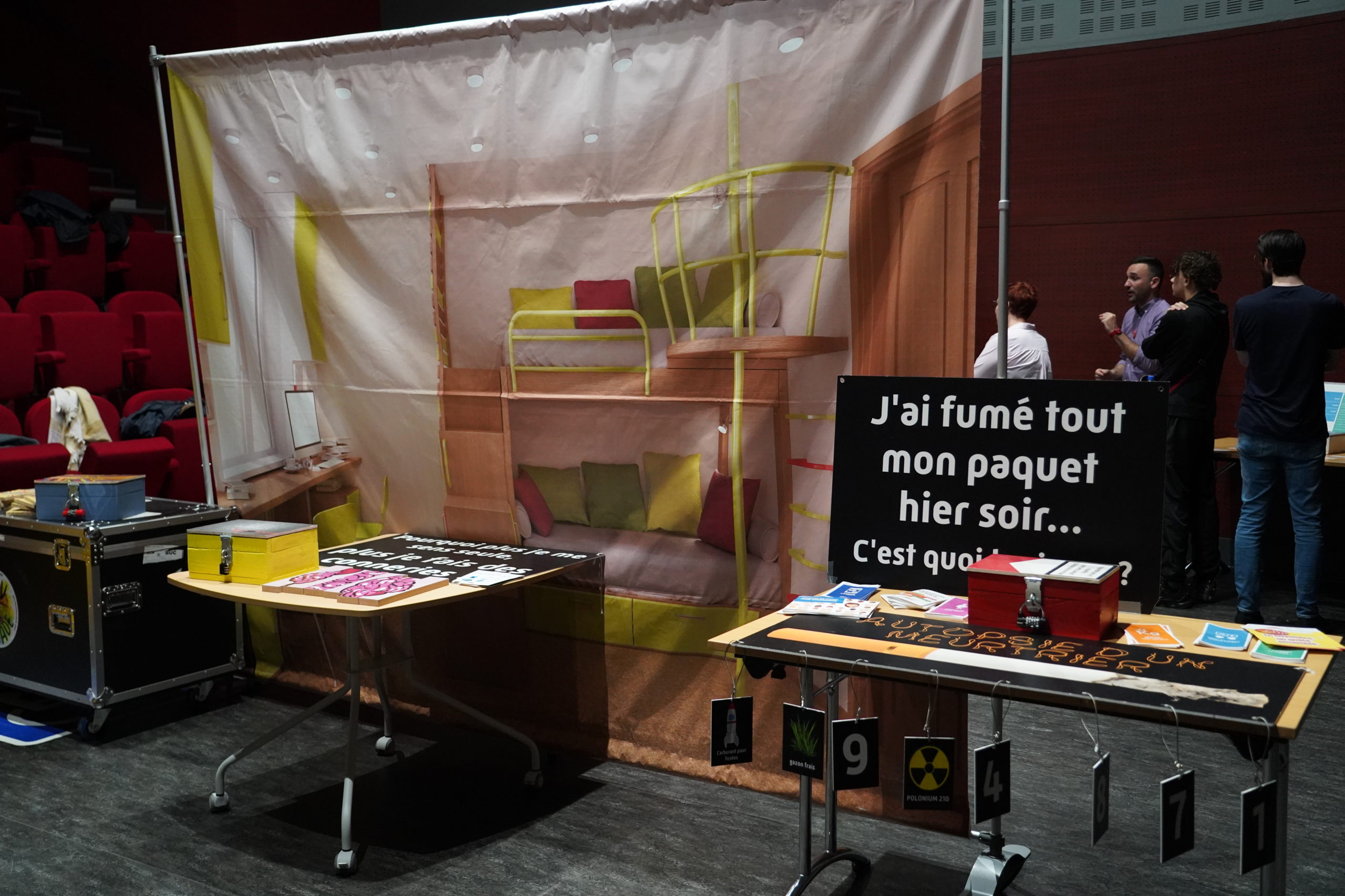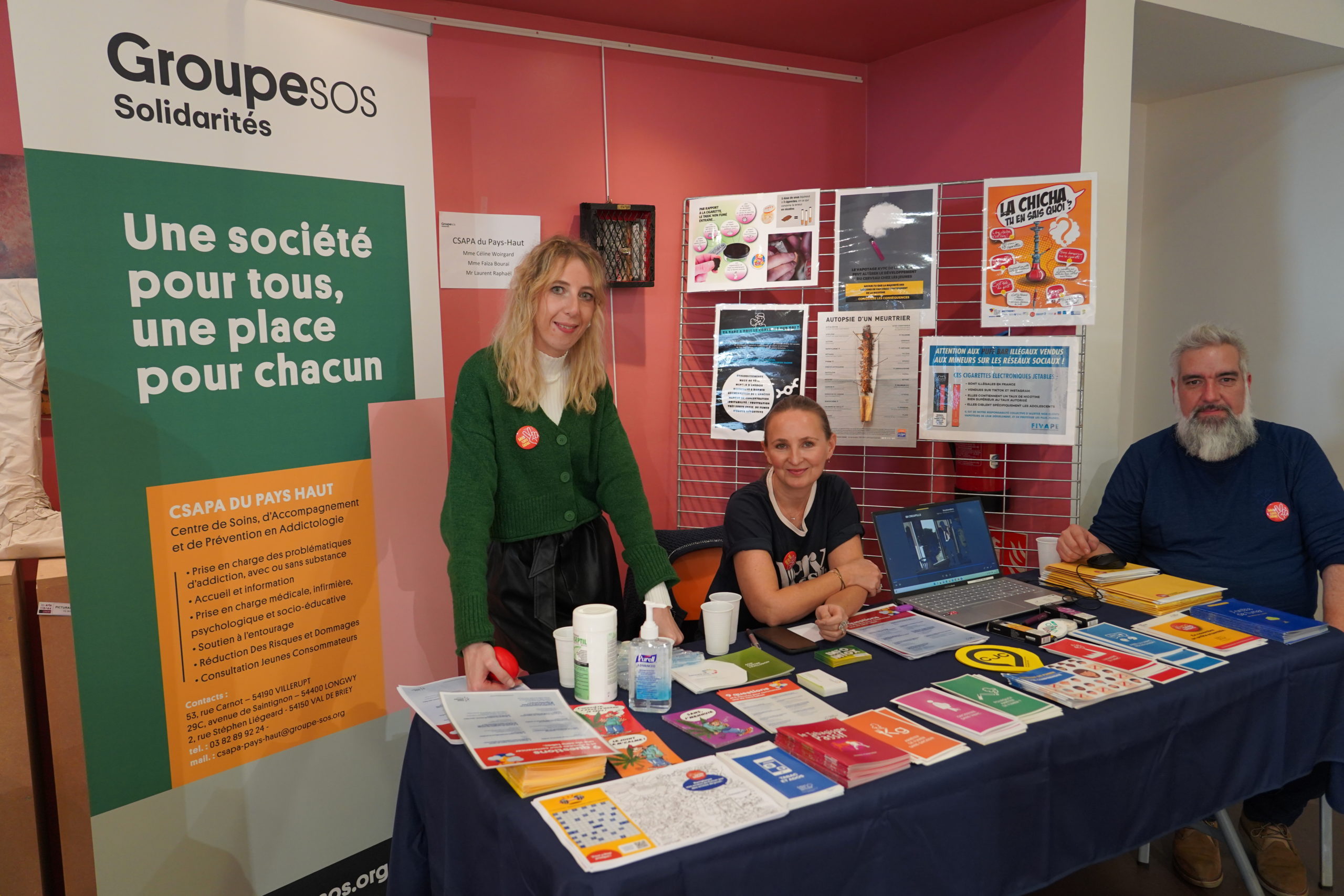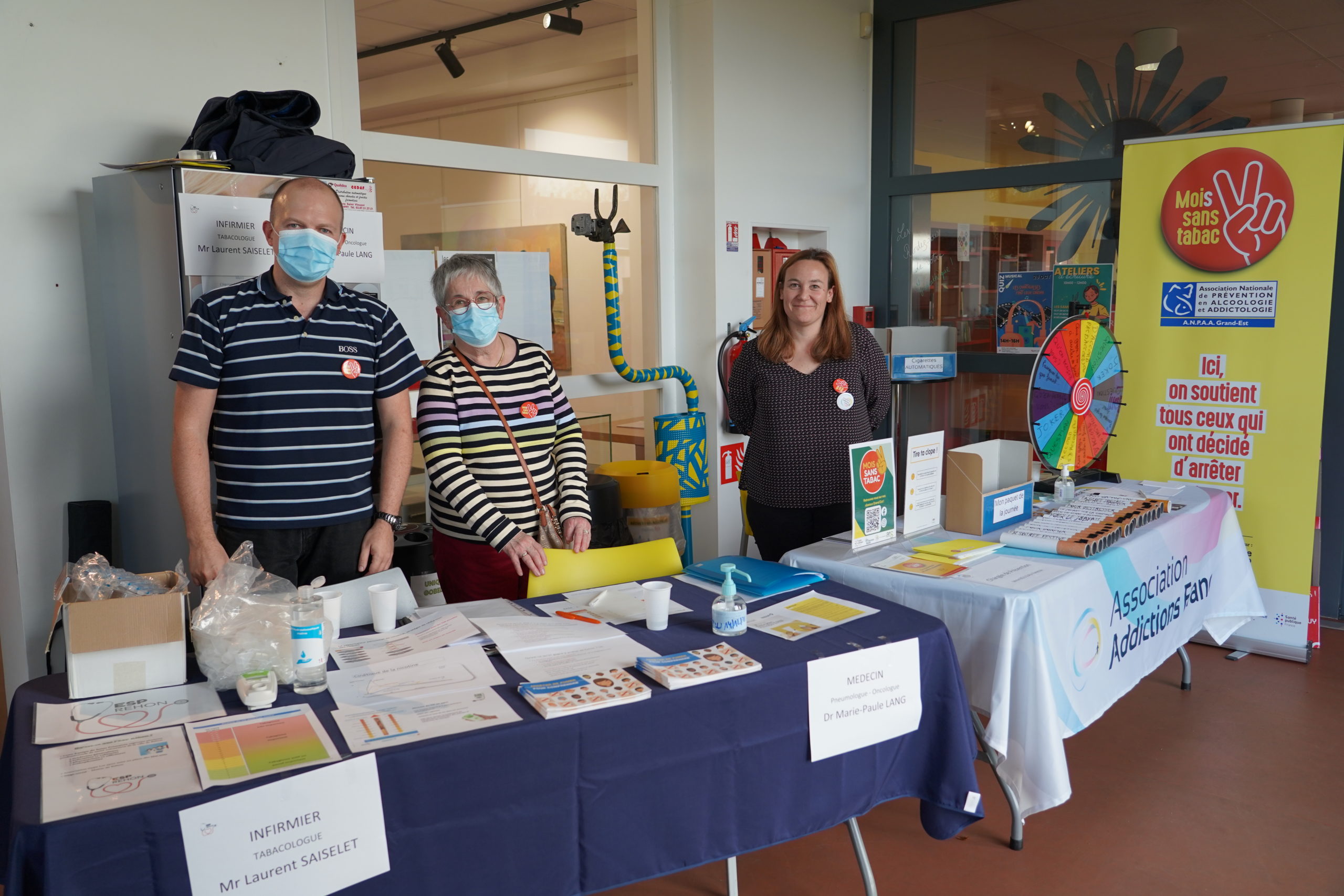 Dans le hall de la Médiathèque, il y avait les curieux, ceux déjà bien décidés à arrêter et puis d’autres venus sous les conseils d’un proche. Le CSAPA, la CPAM, Addction France (anciennement ANPAA), la ligue contre le cancer et l’ESP de Rehon, entre autres, étaient présents pour informer et conseiller le public de façon parfois ludique.