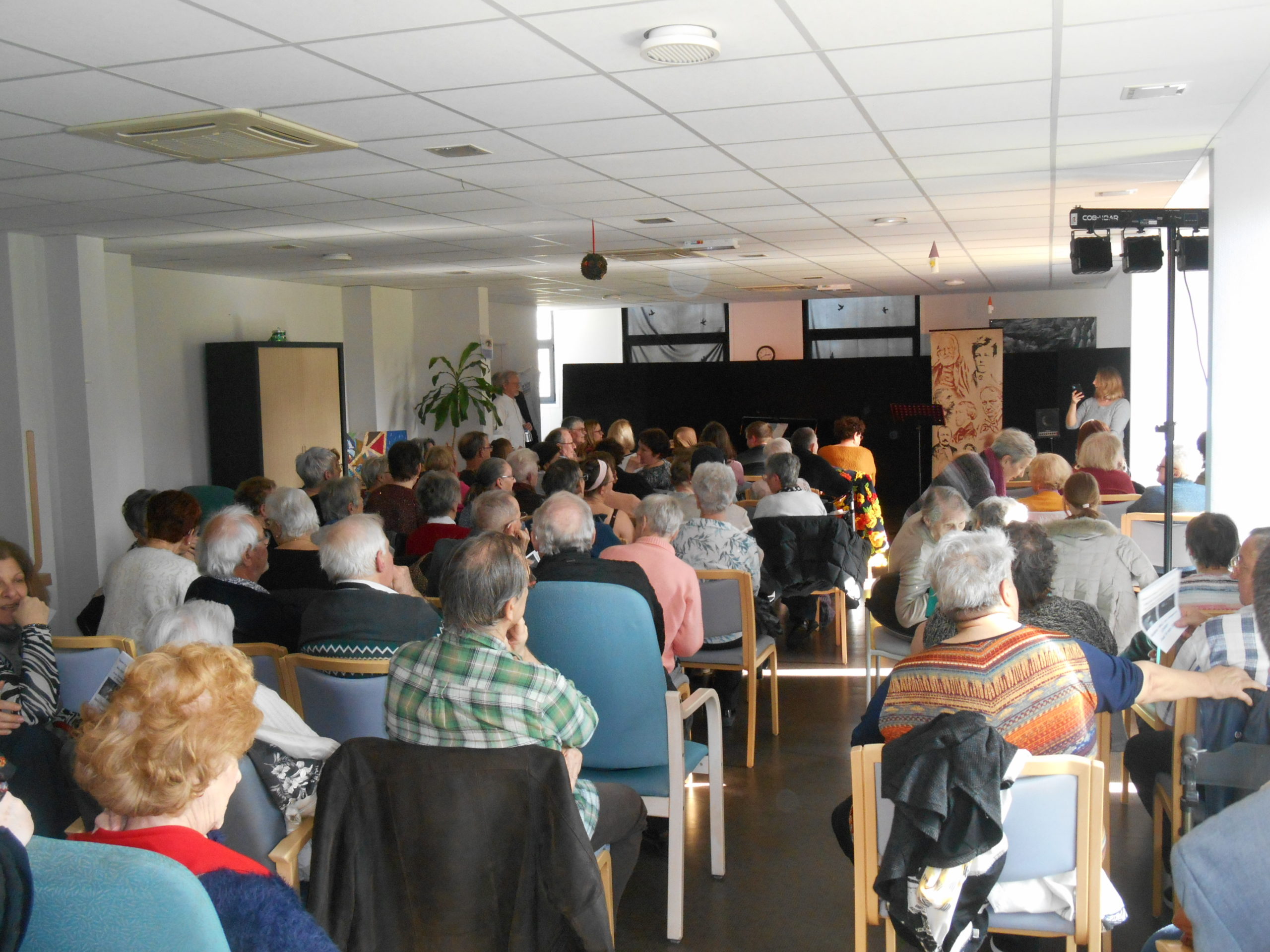 Ainsi, plus de 20 moments de poésie sont venus apporter du bonheur aux nombreux participants. Pour clôturer la représentation, les participants ont contribué à la rédaction d’un acrostiche repris bien évidemment par nos artistes :