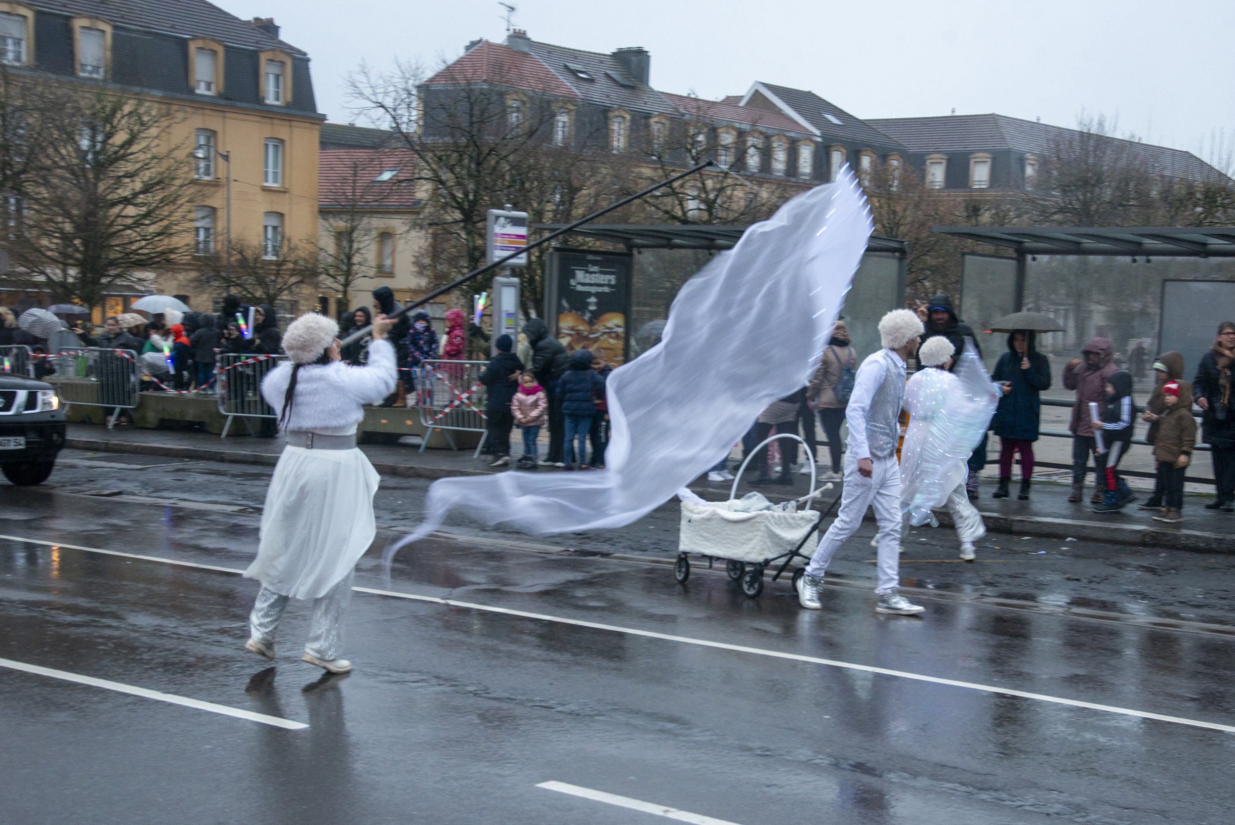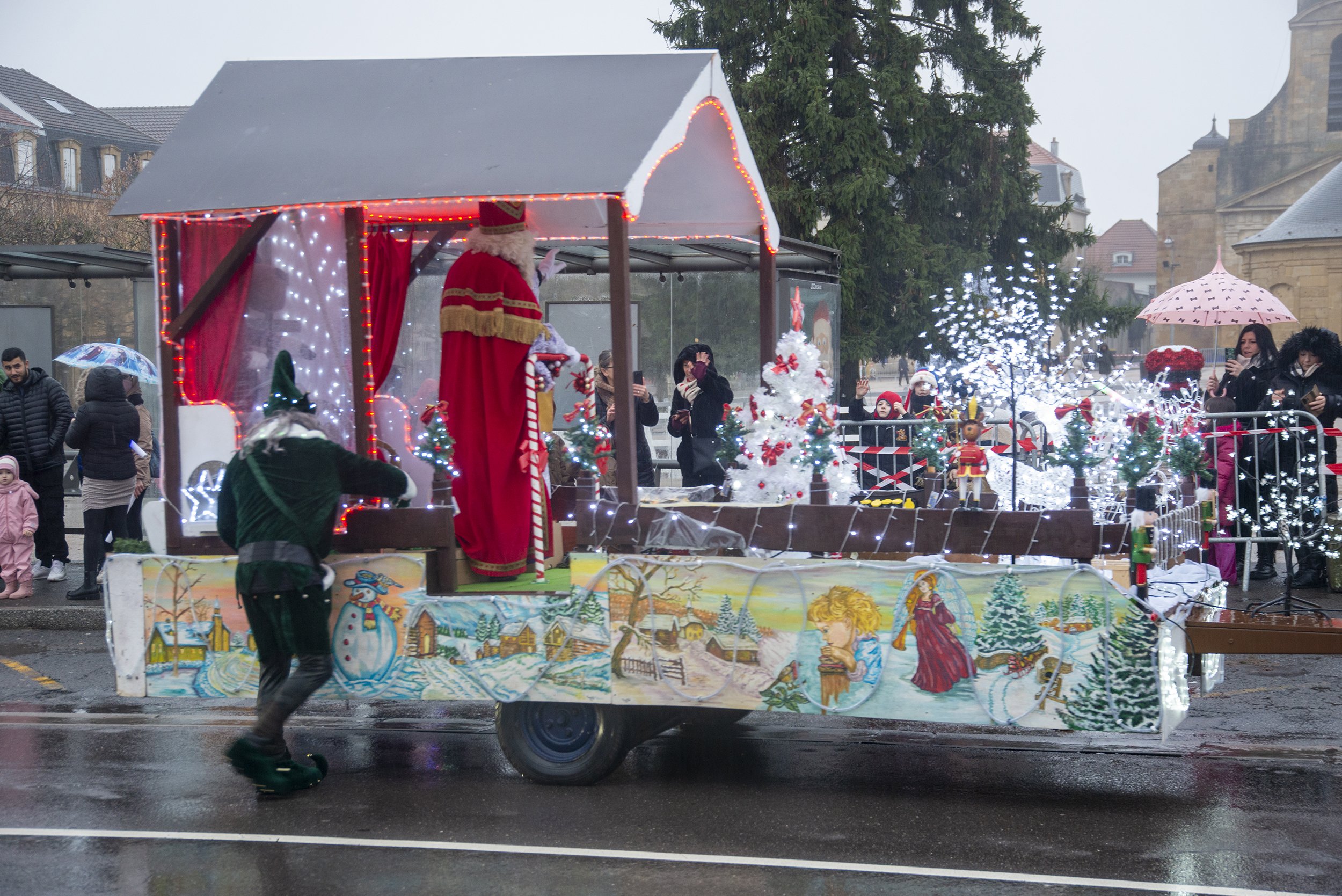 07/12/25 – Malgré la pluie, ce dimanche, Saint-Nicolas est venu à la rencontre des enfants. Les chars des cités Merlin et de l’association Bien Vivre au Bel Arbre, ont défilé au rythme des musiques entraînantes, tandis que les lutins de Saint-Nicolas ont distribué des papillotes aux enfants.
