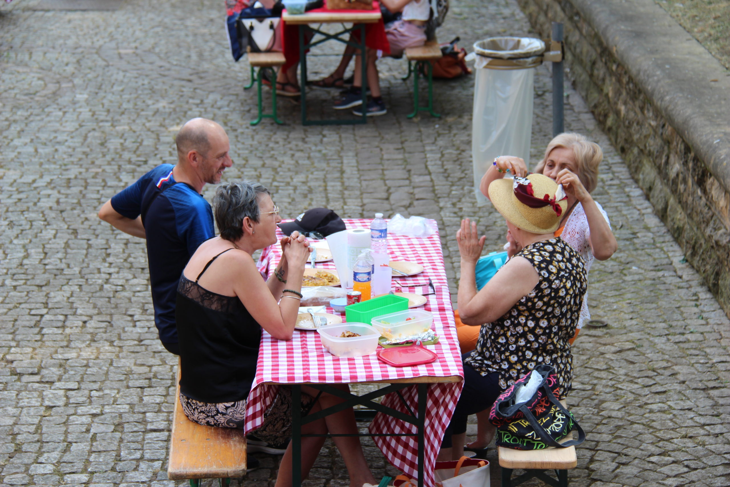 Ils étaient une quarantaine, ce samedi à se retrouver dans la cour du Musée à l’occasion de la manifestation « Amène ta nappe », oragnisée par le service Sante et Cohésion Sociale de la Ville de Longwy. Certains ont profité d’un moment de détente, installés dans l’herbe, à l’ombre des arbres. D’autres ont préféré le confort des tables mises à leur disposition.