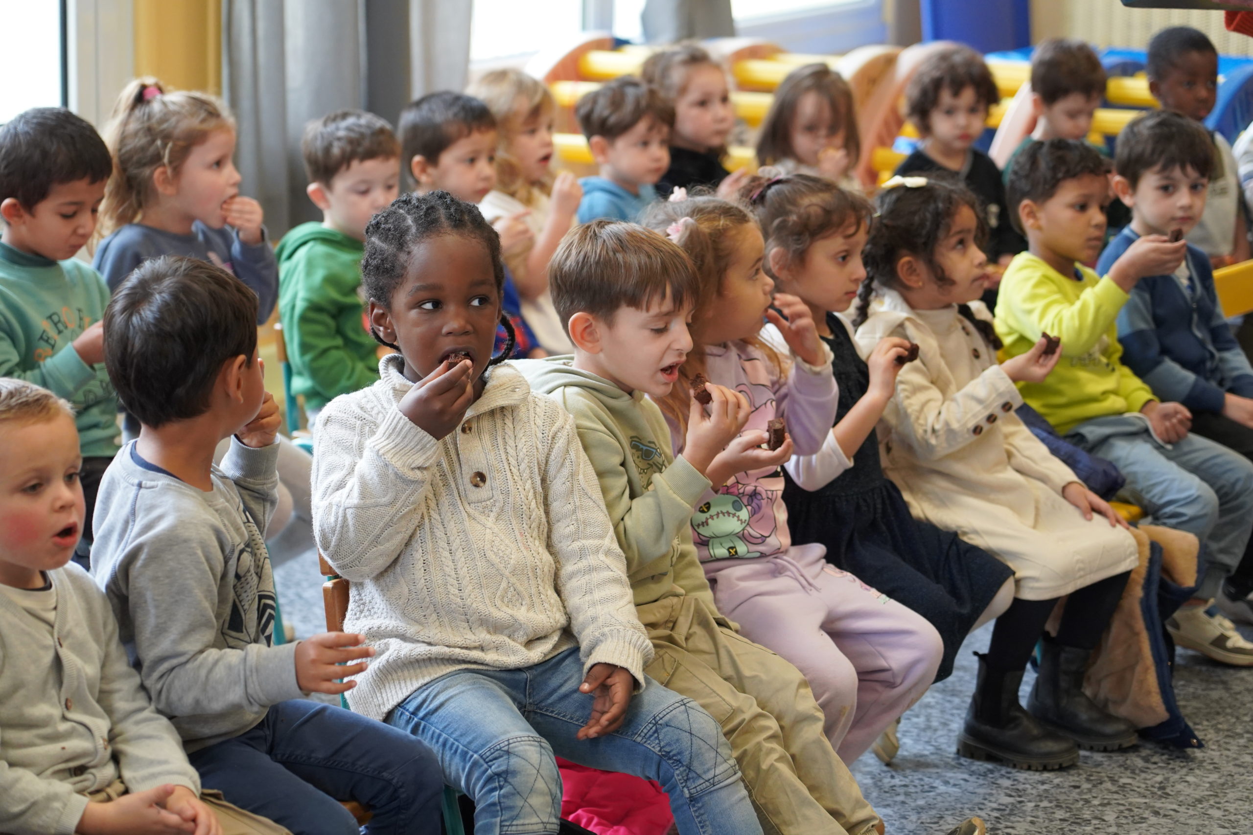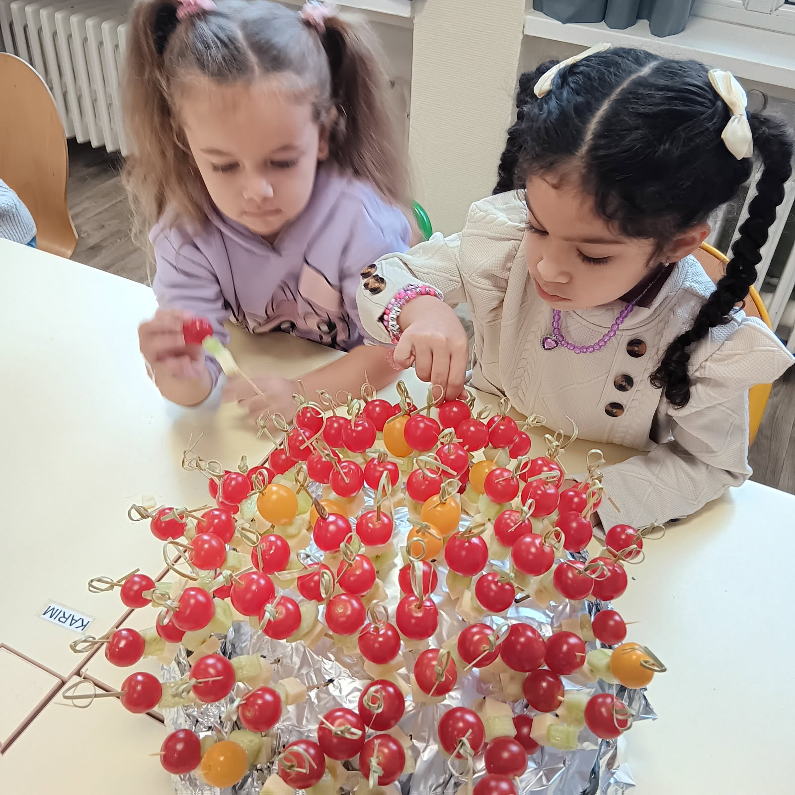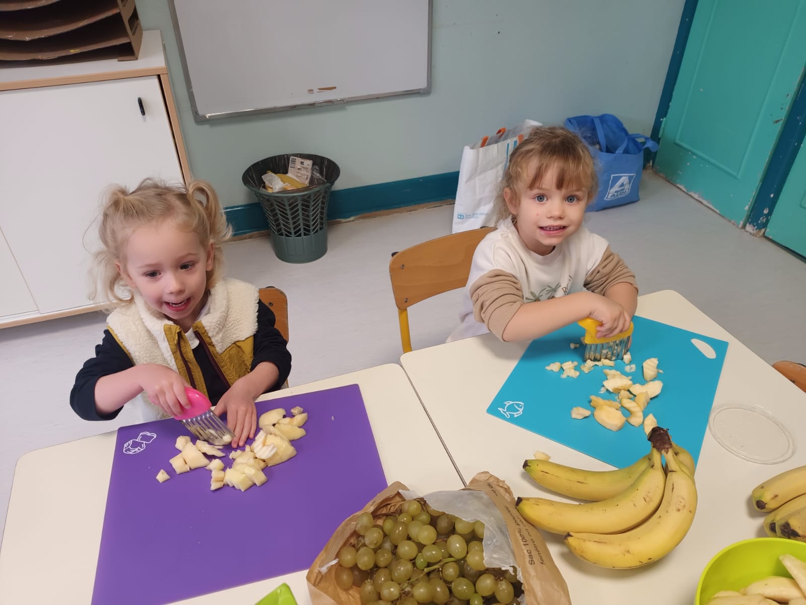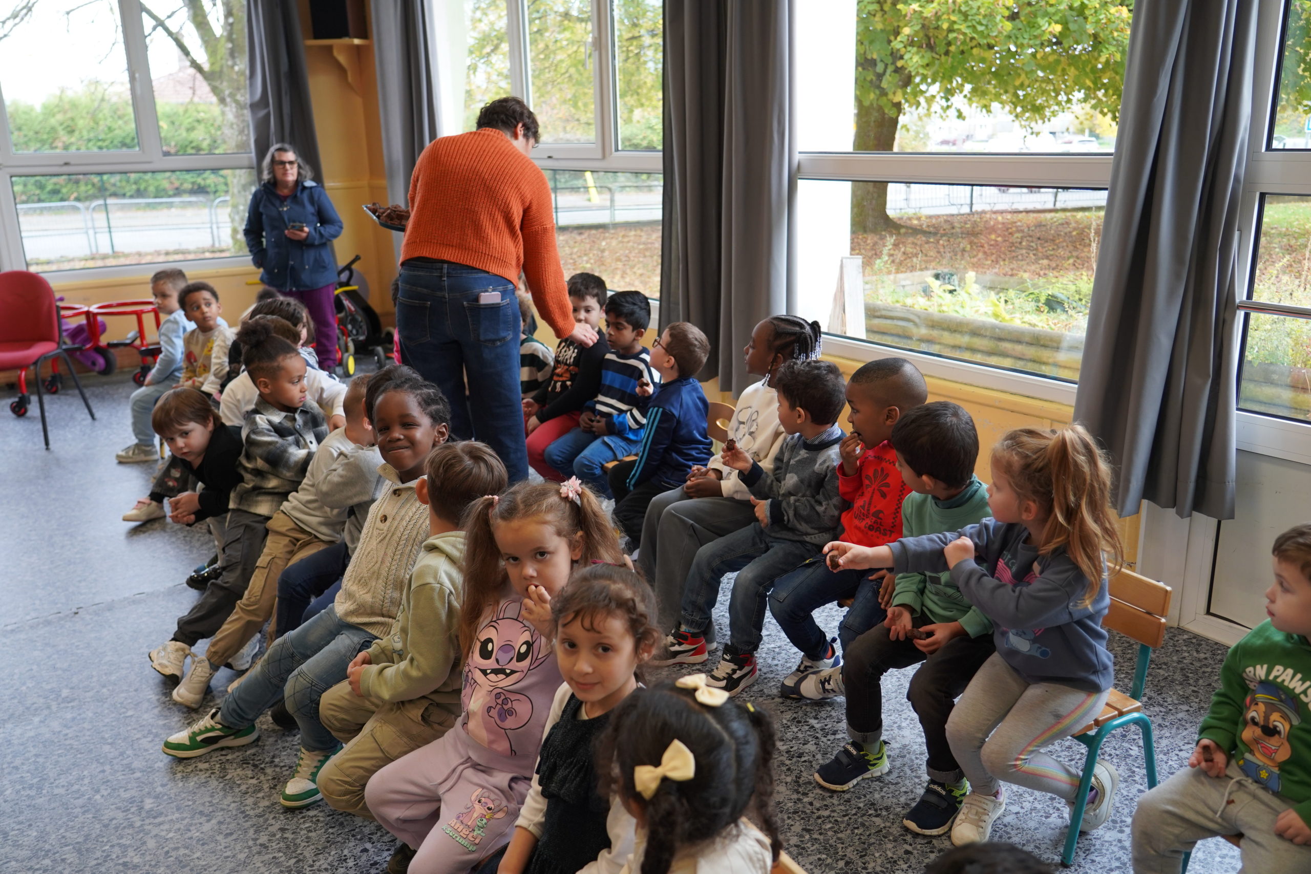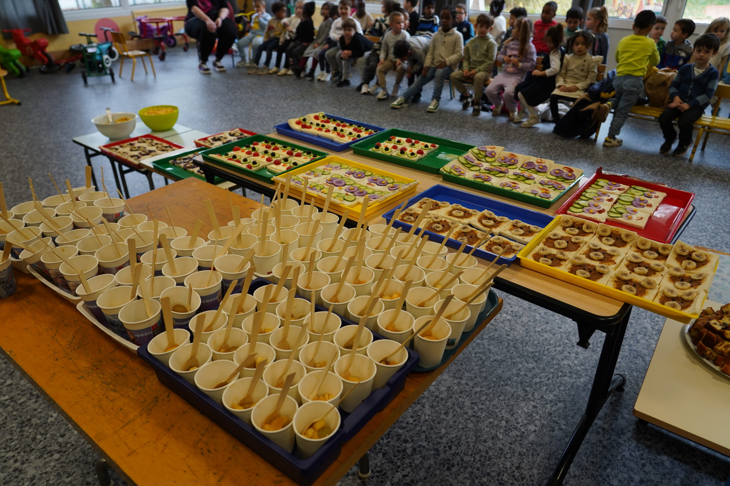20/10/2025 – Vendredi dernier, à l’occasion de la semaine du goût, les élèves de l’école maternelle Porte de Bourgogne ont cuisiné toute la matinée pour préparer des plats et un grand goûter : cake salé, tartines de saison, compote, brochettes, gâteau, salade de fruits et jus d’orange pressé maison. Les parents ont aussi mis la main à la pâte en confectionnant des roses des sables de chocolat, tandis que d’autres ont accompagné les enfants pour préparer des gâteaux en classe.