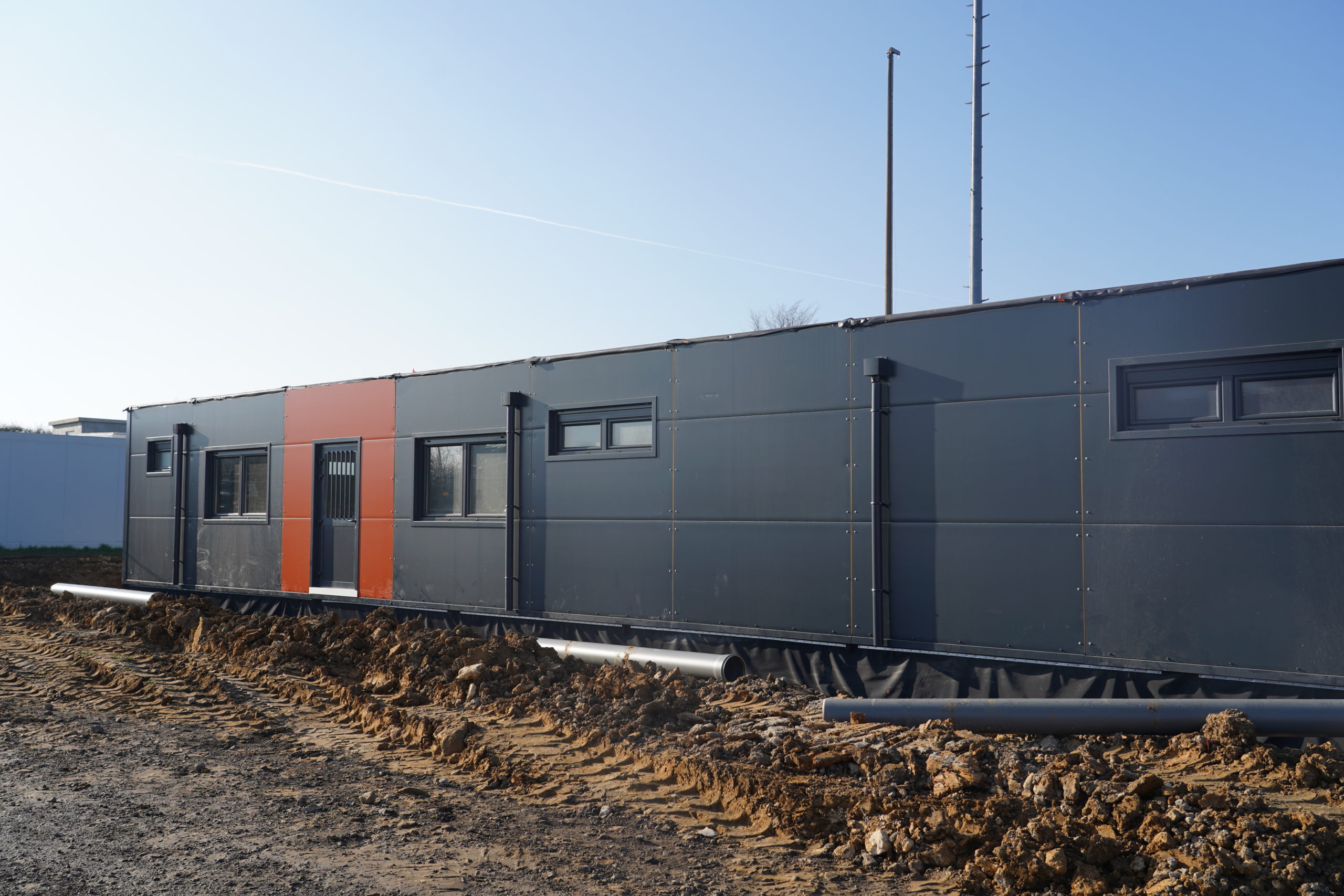 Les 17 modules qui constituent les nouveaux vestiaires du terrain de foot synthétique de la plaine de jeux ont été posés il y a quelques jours. Ces bungalows qui cumulent une surface au sol de 380 m2 accueilleront les vestiaires (pour les joueurs et arbitres), des locaux médicaux et un club house.