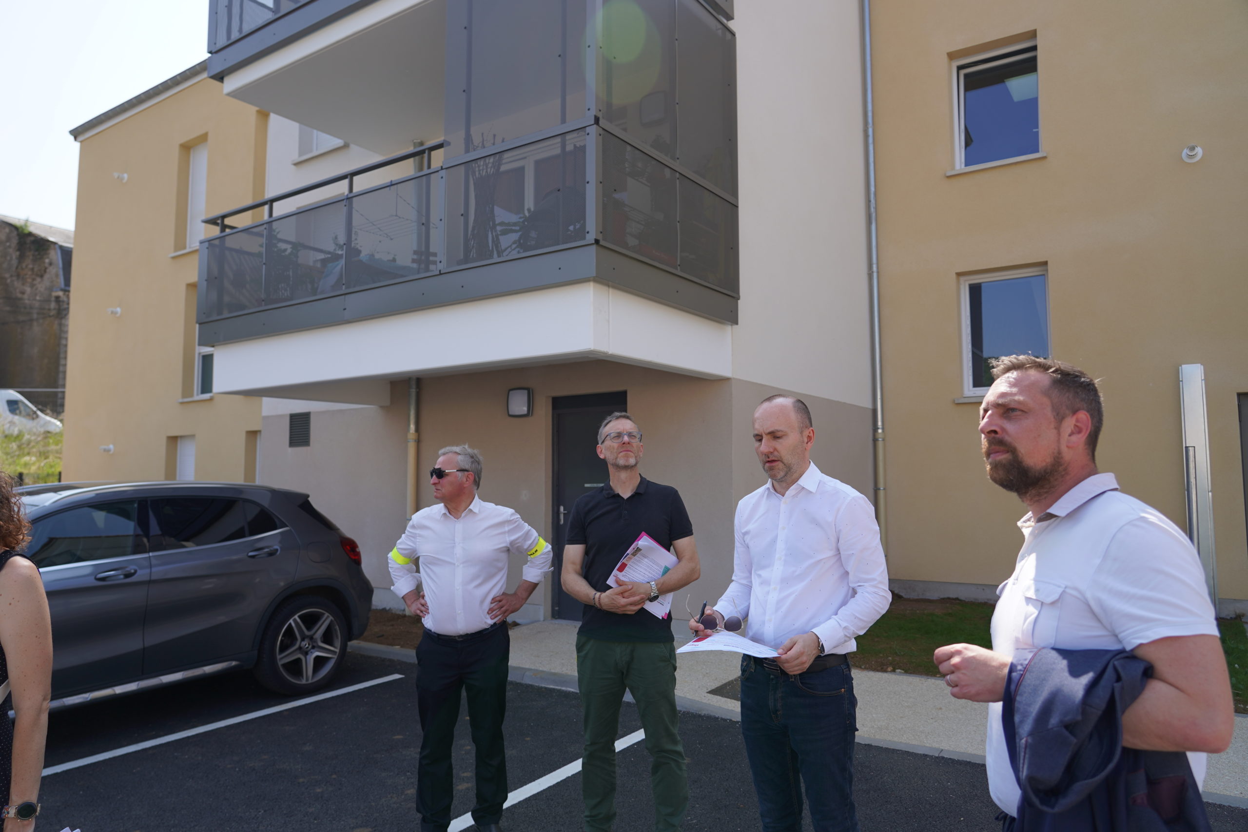 Enfin, la délégation s’est rendue au Clos de la Birquetterie, une ancienne friche industrielle de 5 hectares transformée en un ensemble résidentiel moderne et fonctionnel. Ce nouveau programme initié en partenariat avec MMH sur les communes de Longwy et de Réhon comprend 12 pavillons individuels et un immeuble collectif, financé en Prêt Locatif Social (PLS) pour permettre aux classes moyennes de se loger.